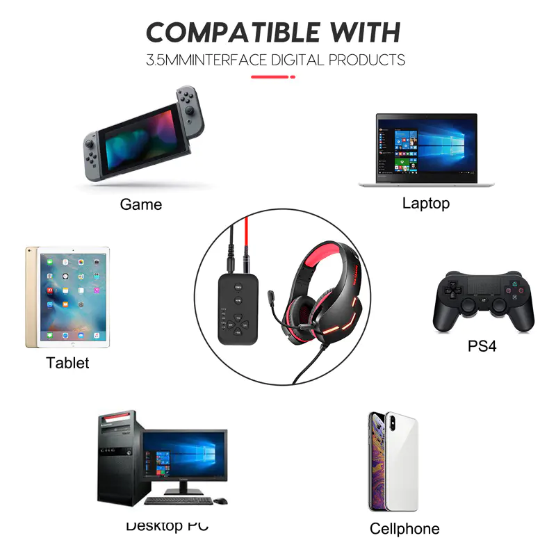 Headset integrated one-directional microphone can transmit high-quality communication with its premium noise-canceling feature, pick up sounds with great sensitivity, and remove the noise, which enables you clearly deliver or receive messages while you are in a game. Long flexible mic design very convenient to adjust the angle of the microphone.