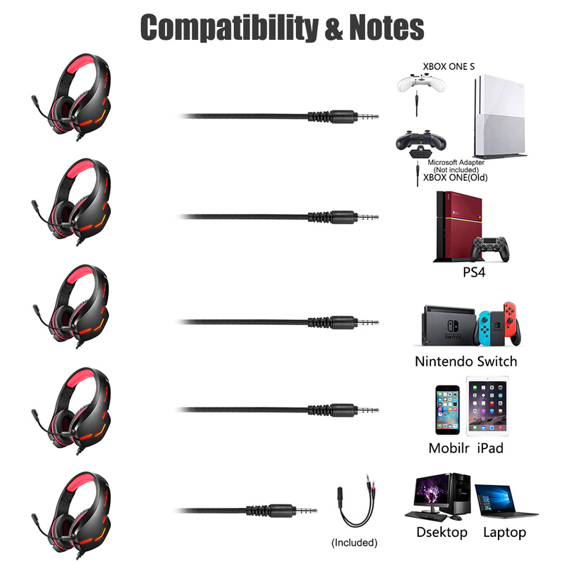 【WIDE COMPATIBILITY & PLUG AND PLAY】: USE THE 3. 5mm JACK TO CONNECT to the console. One Headset in Many different platform game consoles. With 3. 5mm jack, compatible with PS4, PS5 Xbox One (Old version of Xbox One needs an extra Microsoft adapter, not included), Xbox One S/X PC laptop Mac iPad tablet mobile phone. Please note that The USB port is for led light ONLY.