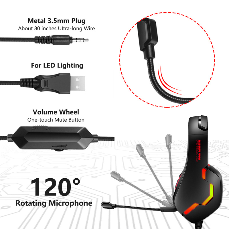 【COMFORT TO WEAR】Headset microphone is a very soft and breathable protein earpad that ensures long-term comfort and excellent noise isolation gaming Headset, height adjustable, suitable for almost all head sizes. LED lights designed on the earcups to highlight game fun.